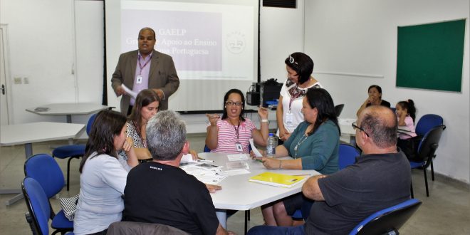 Conforme previsto no cronograma do Departamento de Apoio Pedagógico da Secretaria de Educação, iniciaram no mês de abril as oficinas ministradas pelo Gaelp – Grupo de Apoio ao Ensino de Língua Portuguesa a professores dos anos finais do Fundamental I (4º e 5º anos) e aos que lecionam a disciplina no Ensino Fundamental II.