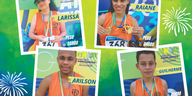 O atletismo da APESP – Atividades Paralímpicas Escolares de Santana de Parnaíba conquistou sete importantes medalhas no Meeting do Rio de Janeiro. Durante a competição realizada em agosto, com paratletas de várias cidades do Brasil, os parnaibanos das provas de corrida, lançamentos de peso e dardo, voltaram para a cidade com dois ouros, três pratas e dois bronzes.