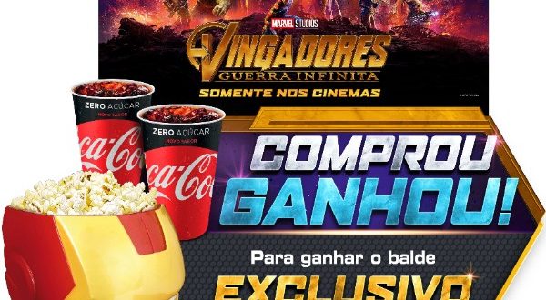 O combo será composto por um balde de pipoca exclusivo no formato da cabeça do Homem de Ferro e dois copos de refrigerante.