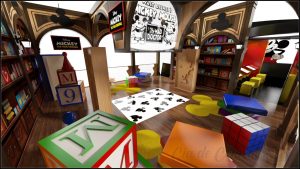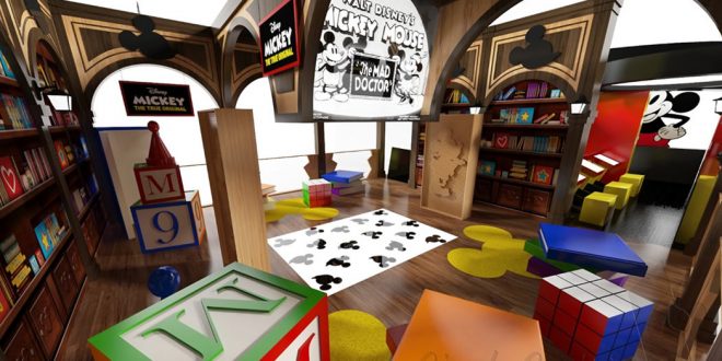 Por fim, a Biblioteca, maior dos cenários, promete encantar a todos com diversas ações interativas, como TV, tapete com projeção e diversos elementos remetendo à história do Mickey.