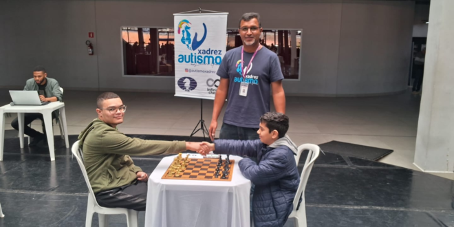 Dois jogadores que fazem parte do “Projeto Autismo Xadrez” da Secretaria dos Direitos da Pessoa com Deficiência (SDPD), coordenado pelo professor Luciano Gomes participaram de um torneio pela primeira vez.