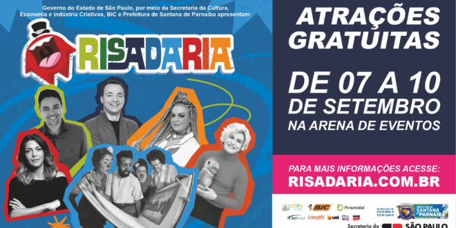 A cidade de Santana de Parnaíba, na grande São Paulo, será a casa do Risadaria, maior festival de humor do país, entre os dias 07 e 10/09. Famosos do cenário artístico brasileiro como Paulo Bonfá, Lucas Mendes, Marlei Cevada (Sangue), Maicon Sales (Ana Maria Braga), e mais de 40 nomes, estarão na Arena de Eventos para apresentações gratuitas voltadas a adultos e crianças.