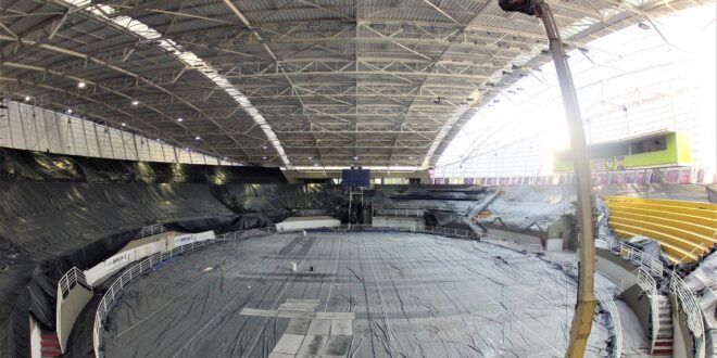 Após 18 anos de uso, chegou a hora de trocar a cobertura do Ginásio Poliesportivo José Corrêa, a casa dos esportes de quadra de Barueri. Além do desgaste natural das telhas, diversos fatores contribuíram para o surgimento de goteiras, por exemplo.